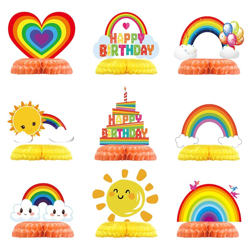 - Rainbow Party Centerpiece Set: our rainbow table decorations centerpieces feature 9 styles, including rainbow, clouds, sun, birthday cake and heart, sufficient quantity and styles to meet your party themed decor needs, create a cheerful and surprising atmosphere for you
