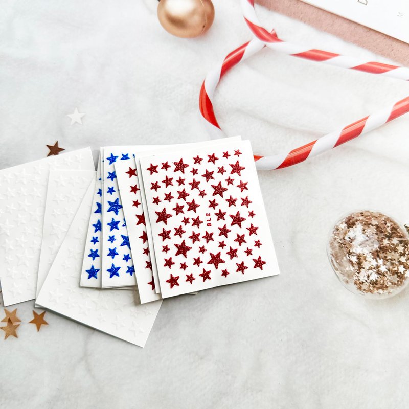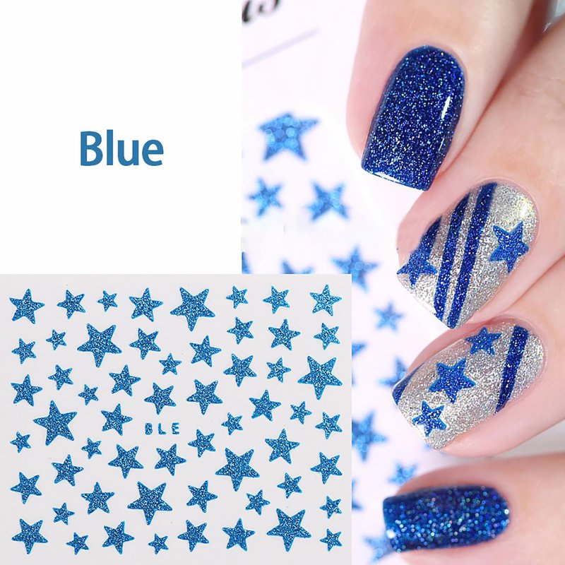 9 Sheets 4th of July Nail Stickers 3D Self-Adhesive Independence Day Nail Decals Accessories with Glitter Star Designs Red Blue Acrylic Nail Supplies for Women and Girls DIY Nail Decorations