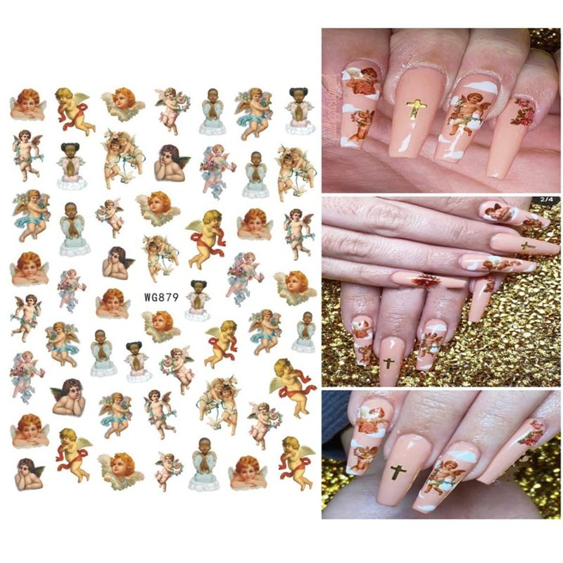 9 Sheets Angel Nail Stickers 3D Self-Adhesive Cupid Nail Art Stickers Eros Flowers Heart Nail Art Supplies Design Valentine's Day Nail Decals for Women Girls Acrylic Nails Manicure Decorations