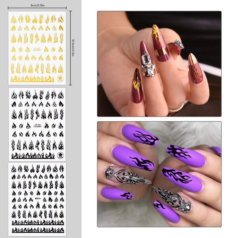 - 【Wide Applications】Great for daily use. Suitable for natural nails and fake nails. 3D fire nail stickers are perfect for decorating your fingernails and toenails. This is the best gift for your wife, girlfriend, mother, friends.