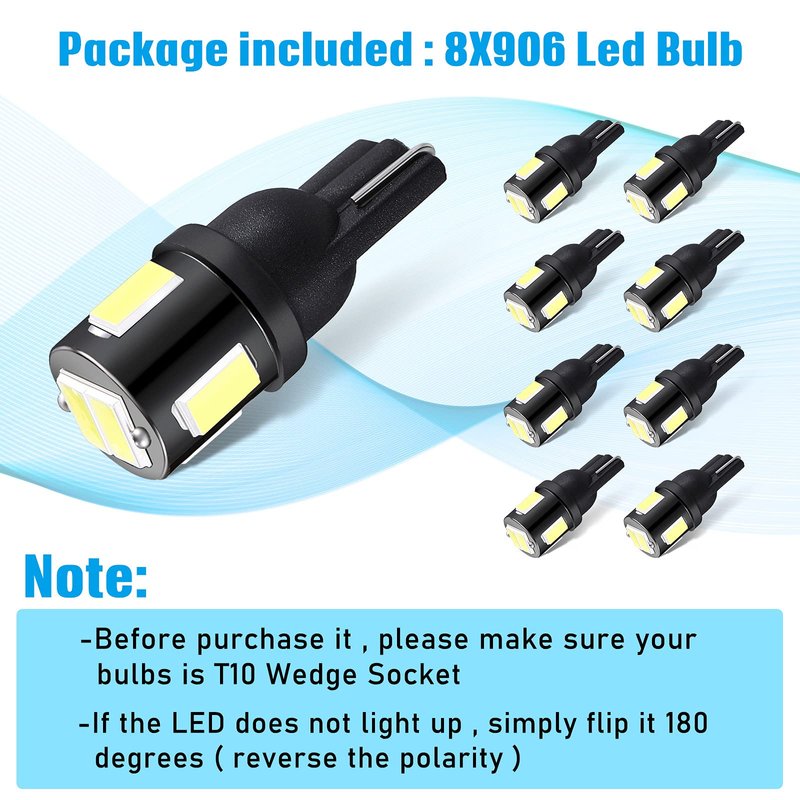 - What's included: there are 8 pieces of 5630 LED T10 wedge marine bulbs, enough quantity for your daily replacement and use