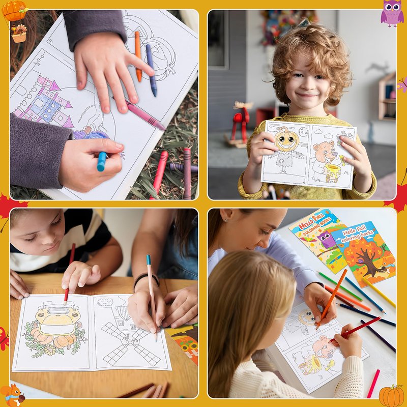- Been enjoying coloring the entire fall - This coloring books set is an option for kids’ goodies bags stuffers, birthday party favors, thanksgiving favors, harvest party favors, gifts,classroom activities,etc. Keep them busy, inspire their imagination and creativity!