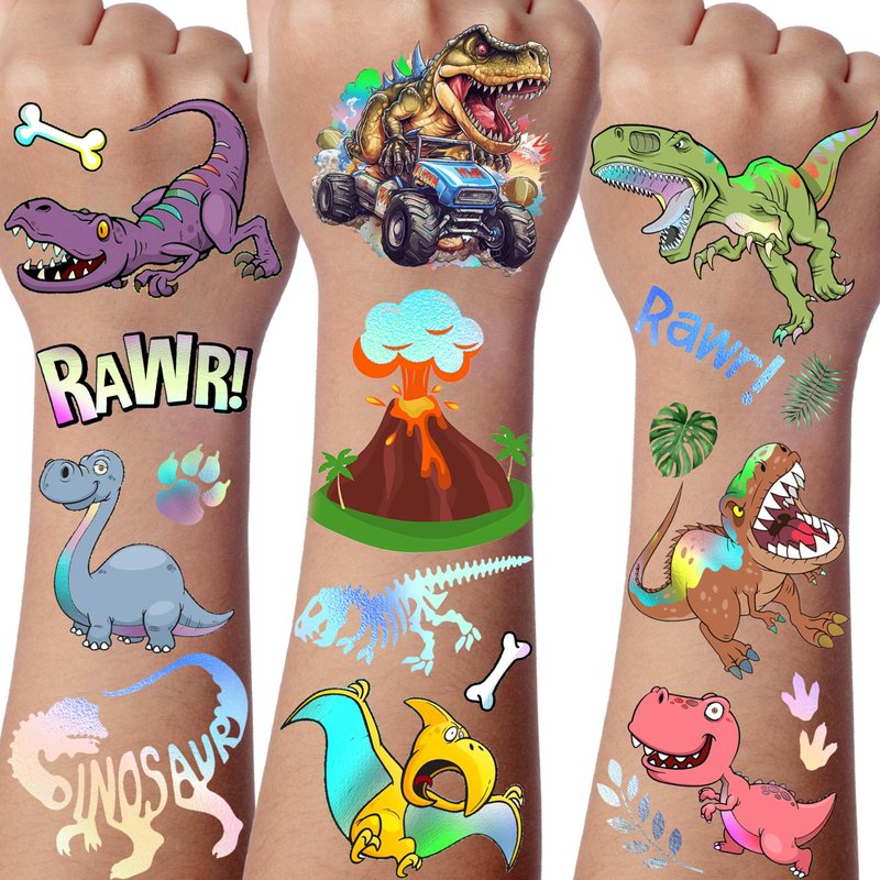 91+ PCS Glitter Iridescent Dinosaur Temporary Tattoos For Kids Boys Girls Teens, Flash Metallic Dinosaur Tattoo Stickers, T-Rex Dino Birthday Gifts Party Favor Supplies Decoration Goodie Bags Stuffers