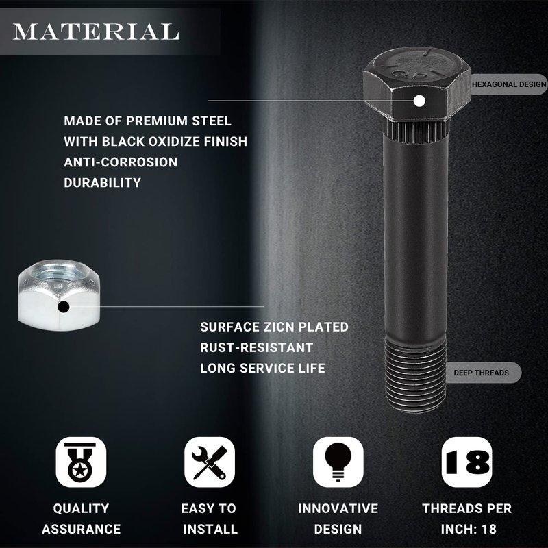 - Feature –Diameter: 9/16"; Threads per inch: 18; Length: 3-1/2", Grade: 5; 9/16-18 lock nuts