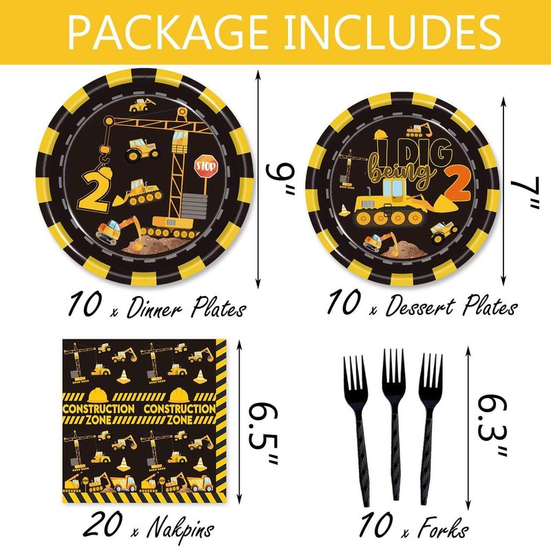 - Many Occasions: Construction 2nd birthday party tablewares are great to decorate Construction 2nd birthday party, Construction two years old party, Dump Truck second birthday party, etc. Construction two years old party supplies can make your party theme more distinct, and the party atmosphere more high.