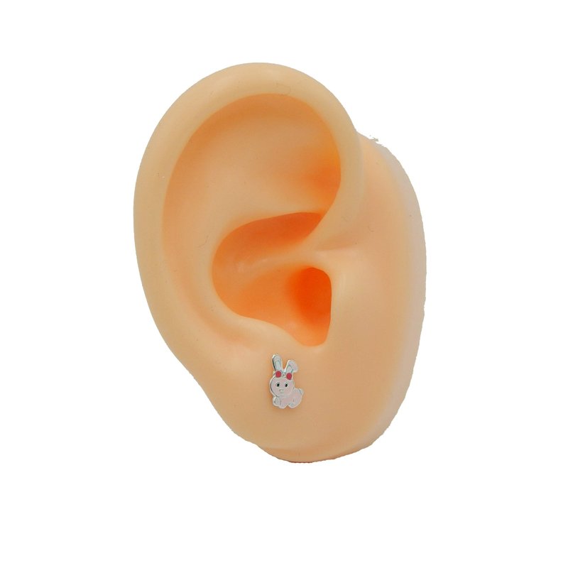 925 Sterling Silver Hypoallergenic Pink Bunny Rabbit Stud Earrings 34987
