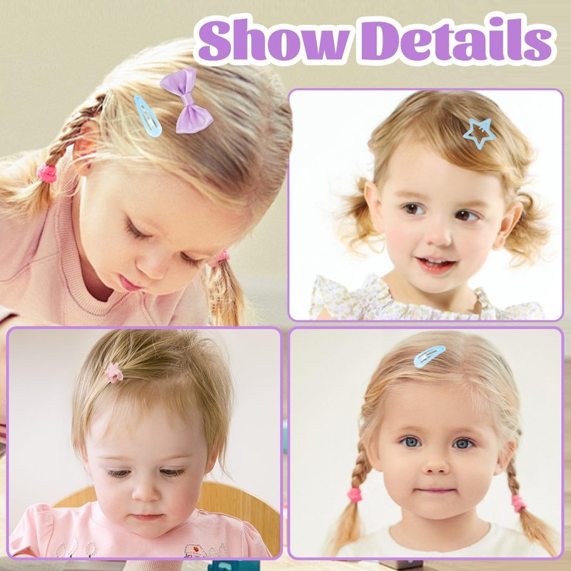 - 【Easy to Storage】Our baby girls ponytail holders come with a transparent reusable plastic box, it can perfect to organize these small hair ties. Each color is placed separately in a grid, neat and easy to access.