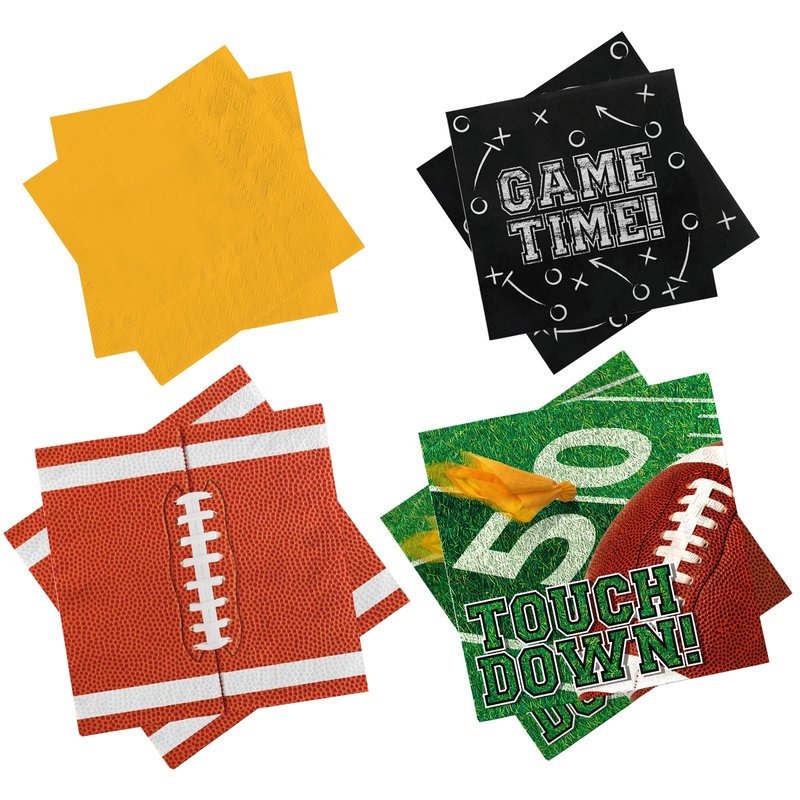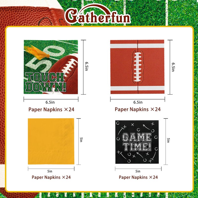- Celebrate in Style with Comprehensive Football Party Supplies: ,48 x paper napkins 6.5” x 6.5”folded(mix 2 designs), 48 x cocktail napkins 5"X5"(folded)(mix 2 designs)