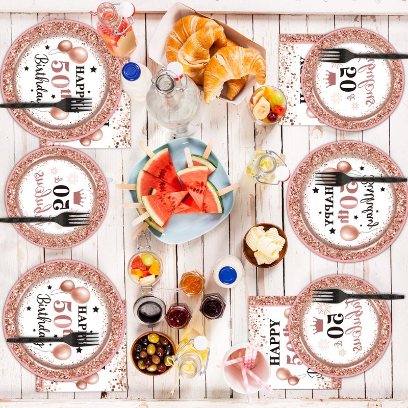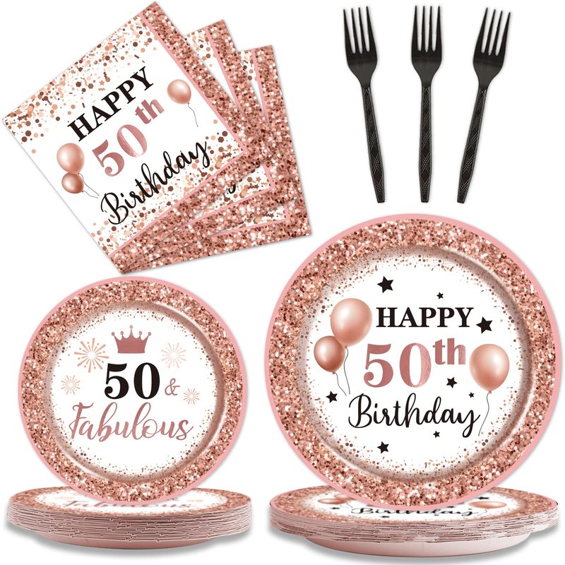 - 【High-Quality】50 and Fabulous Party tableware are made from food-grade cardboard, thickened and sturdy, can hold up well with any kinds of food. The napkins are soft and non-smell. The birthday supplies are designed in a rose and gold background, make the whole supplies set looks more elegant.