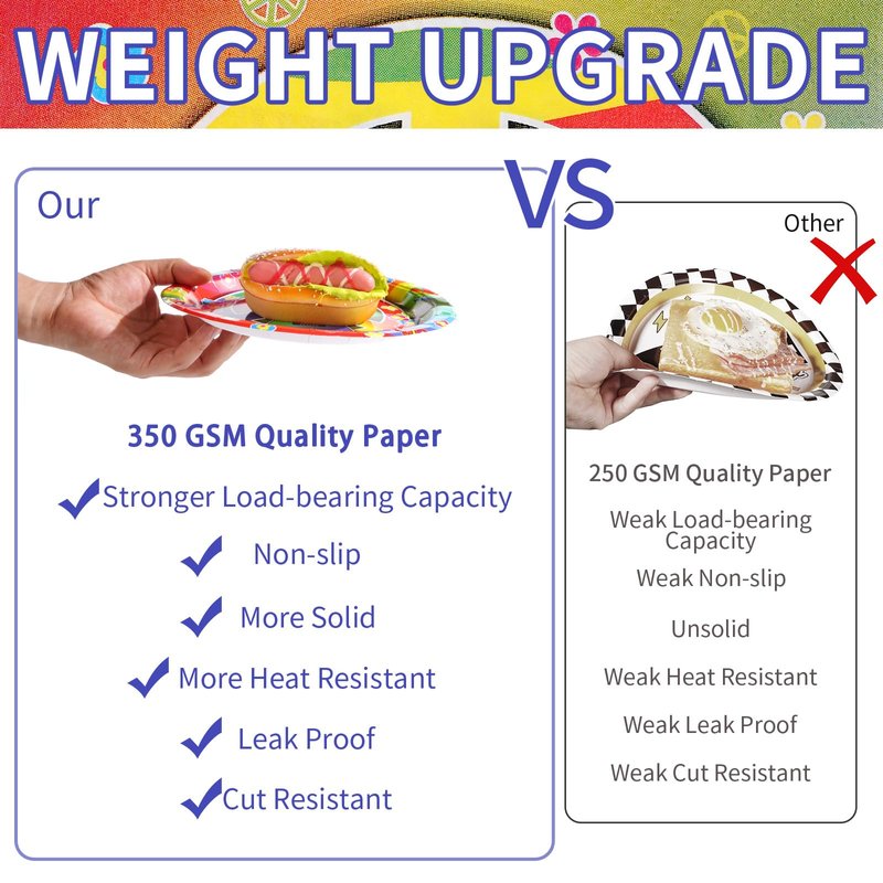 - Upgrade Material: Our hippie plates and napkins are made of high quality thick paper. The hippie paper plate is upgraded to 350g weight, more solid and durable; the napkin is 3 ply, soft and absorbent more thick; the fork is not easy to break; the pattern color is printed beautifully and not easy to fade. Please do not microwave the plate