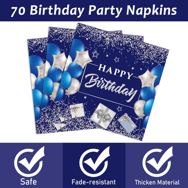 70th happy birthday tableware and napkins are made of quality paper, no smell, heat-resistant and durable. The pattern and color are well-printed and fade-resistant to provide you with a blue theme birthday party that full of jolly atmosphere.