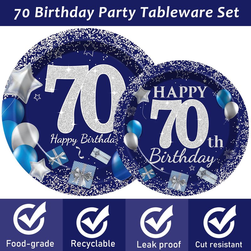 - Party table settings:70th birthday party plates kit can serve 24 guests, and enough quantity for celebrating birthday. The birthday party decoration kit will make your table settings look fantastic.