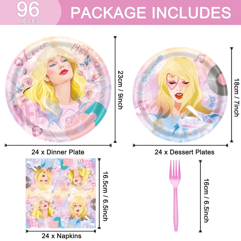 - 【Birthday Party Supplies】This pink birthday party supplies set includes: 24 plates (7inch) + 24 plates (9inch) + 24 napkins (13inch) + 24 forks, making a total of 96 pieces. Each set can serve 24 guests, which will add fun to any birthday party theme.