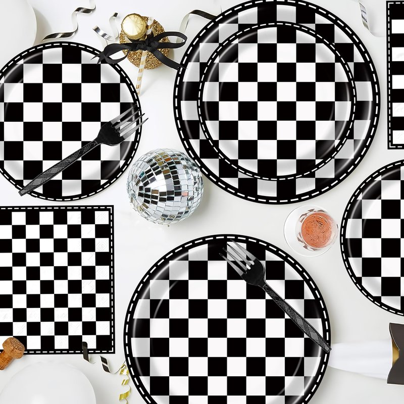 These checkered flag birthday supplies will be sufficient to meet your needs for serving 24 guests.