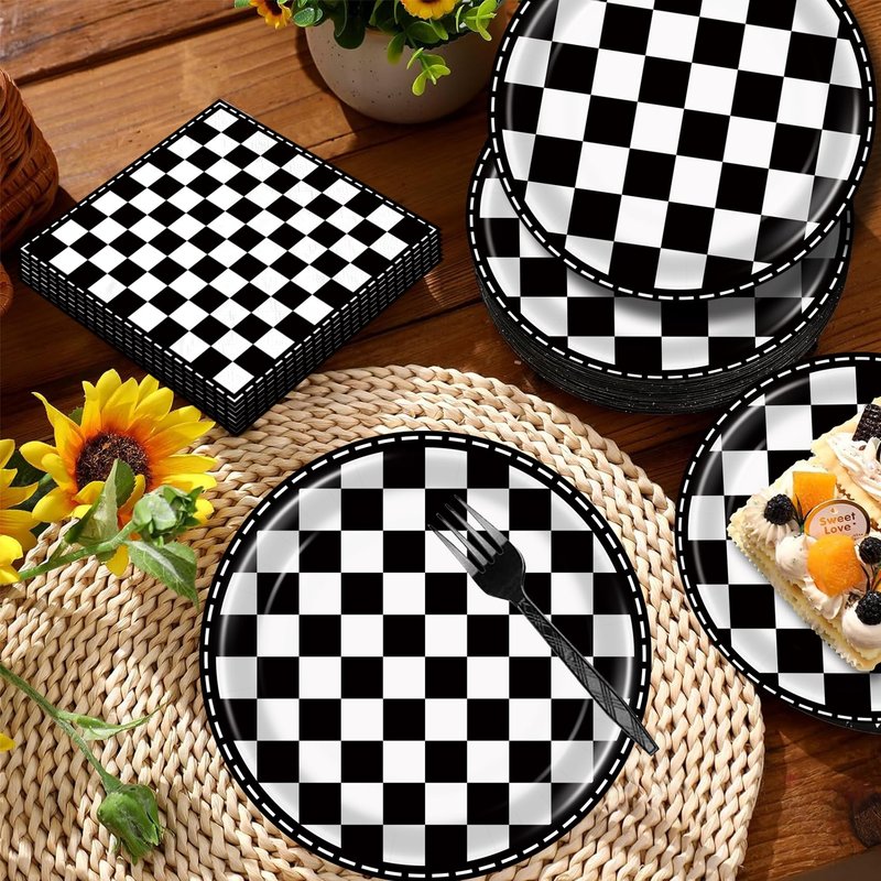 24Pcs 6.5*6.5 inches checker flag plates napkins