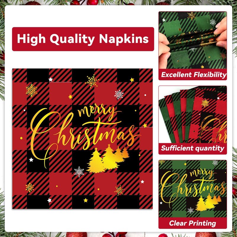 - Delicate bronzing design: Our Christmas plates and napkins have adopted classic red and green plaid patterns and feature "Merry Christmas" letters in a bronzing process, the Christmas dinnerware set will surely add a festive atmosphere to the celebration.