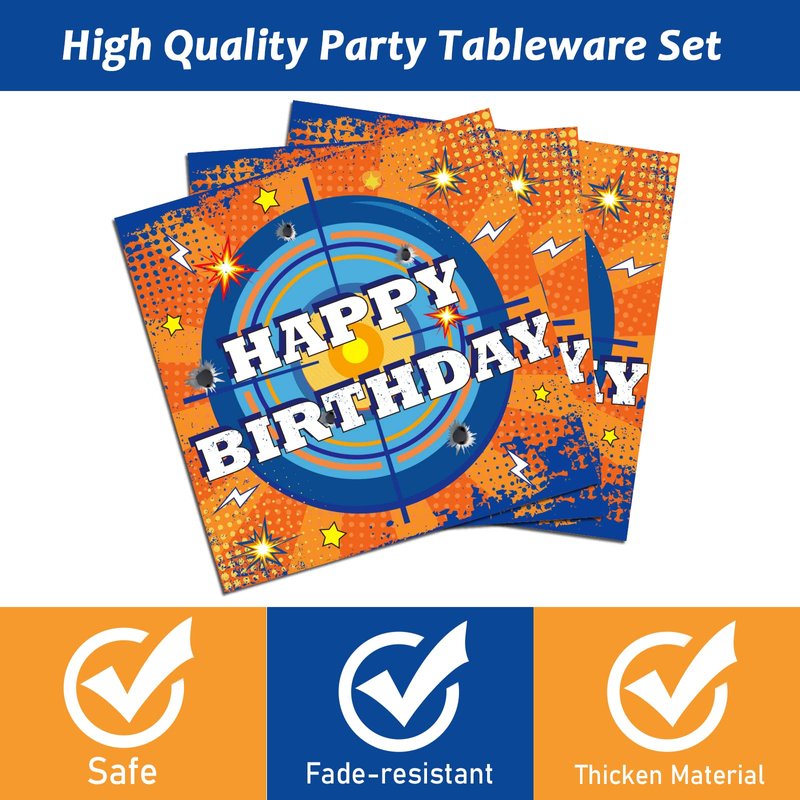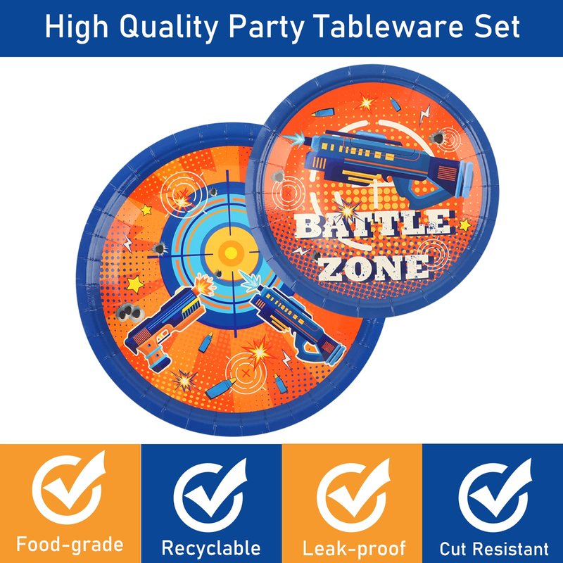 - 【Enjoy Party And Save Time】You will be able to throw a dart war birthday party that impresses your guests the entire night. When the party is over, you can spend more time with family or friends and less time cleaning up. That's why we designed this dart war theme party tableware set.