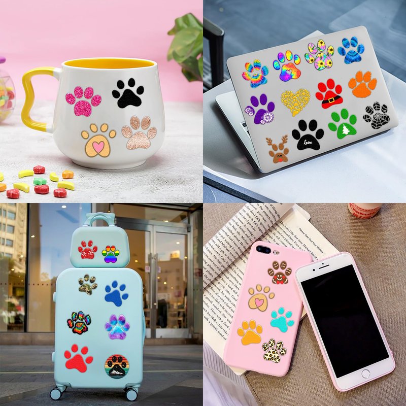 - Funny Dog Cat Paw Print Puppy Birthday Party Supplies: 8 Sheets 96 PCS Let’s Pawty Pupply Pet temporary tattoos stickers, Have a variety of cartoon themed characters, Children can easily Dog Cat Paw Print Puppy Let’s Pawty Pupply Pet stickers and take unique photos to make fond memories. The size of each sheet is 6.1 * 3.1 inches.