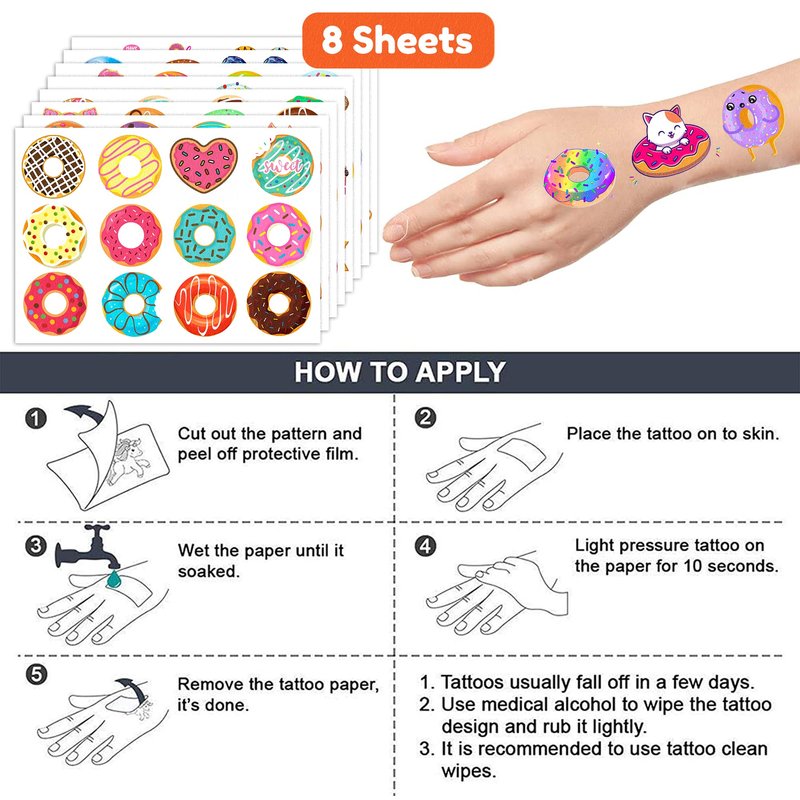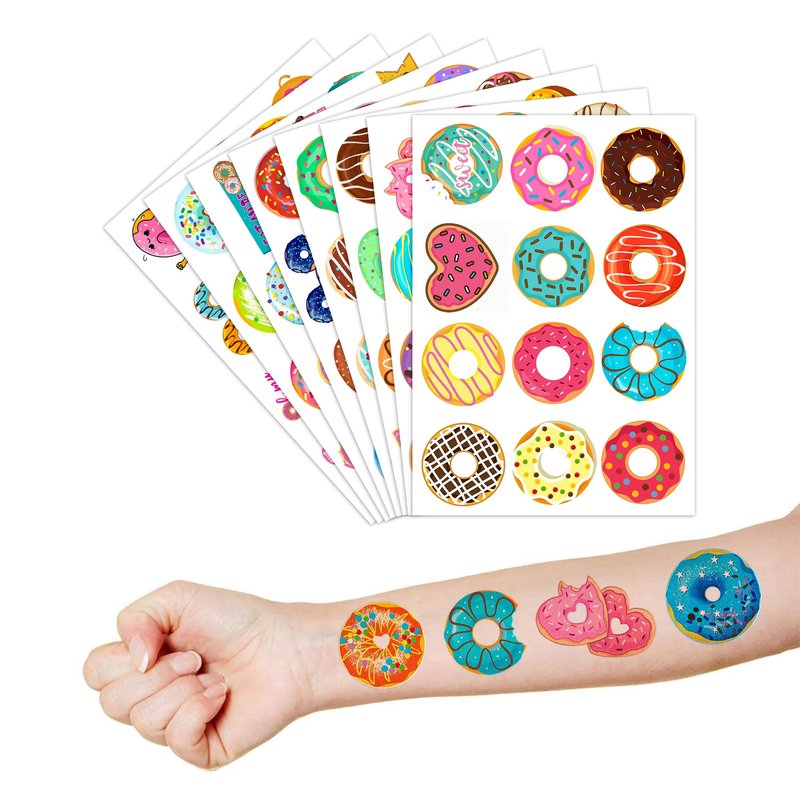 96 PCS Donut Temporary Tattoos Party Decorations Favors Supplies Doughnut Candyland Candy Theme Birthday Cute Sweet Tattoo Stickers Christmas Gifts for Boys Girls Kids Classroom School Prizes Carnival