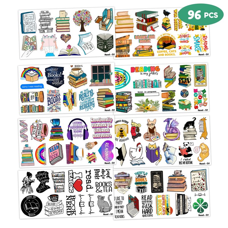 - Cute Funny Reading Book Booklish Nerd Inspirational Quotes Party Supplies: 8 sheets Funny Reading Book Booklish Nerd Inspirational Quotes theme temporary tattoos stickers, features an assortment of cute themed characters, each sheet measures 6.1 x 3.1 inch , all kinds of designs and colors will bring more fun to your party, one size fit all adult and kids.