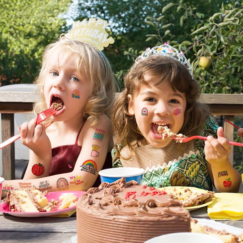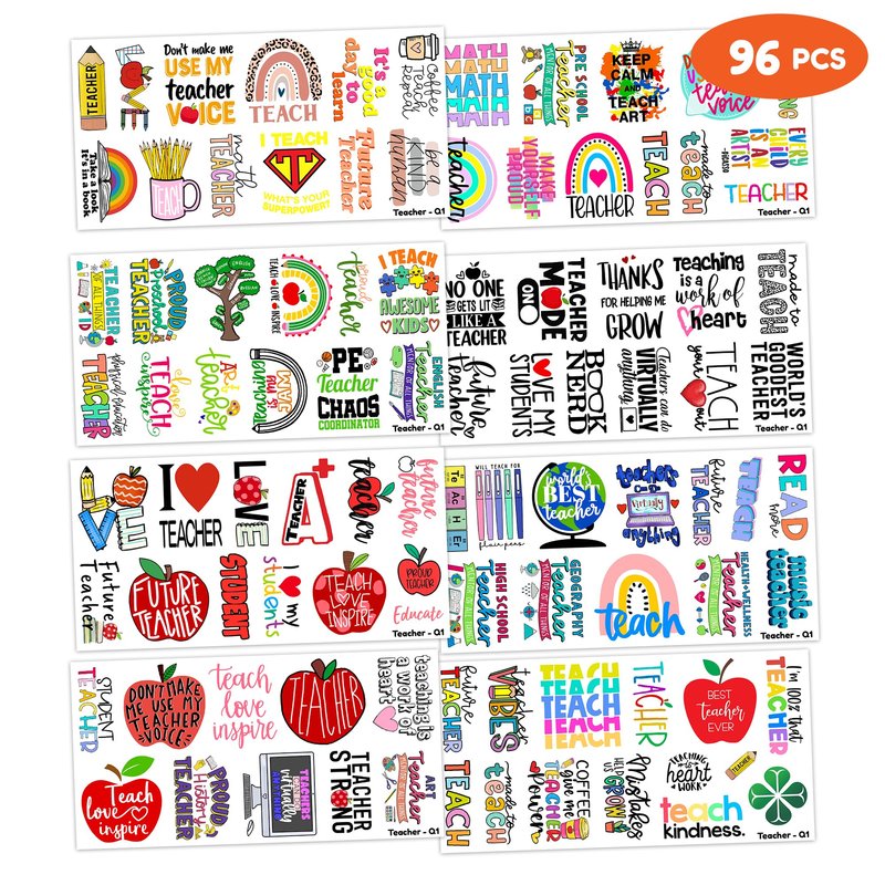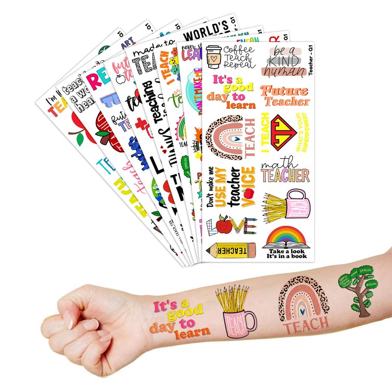 - Future Teacher Day Quote Birthday Party Supplies: 8 Sheets 96 PCS Future Teacher Day Quote Teachers temporary tattoos stickers, Have a variety of cartoon themed characters, Children can easily Future Teacher Day Quote stickers and take unique photos to make fond memories. The size of each sheet is 6.1 * 3.1 inches.
