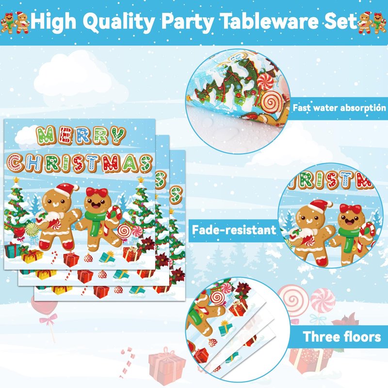 - 【High Quality and Safe Material】All of our Gingerbread Party Supplies Paper Plates Napkins are made of high quality thick paper, which is non-toxic, odorless, heat-resistant and durable. Napkins are soft and highly absorbent. The patterns and colors are exquisitely printed, not easy to fade, and are deeply loved by buyers. Rest easy knowing that safety and quality are our top priorities.
