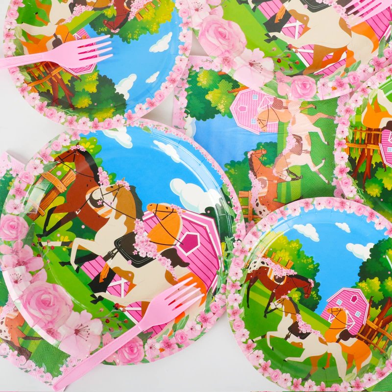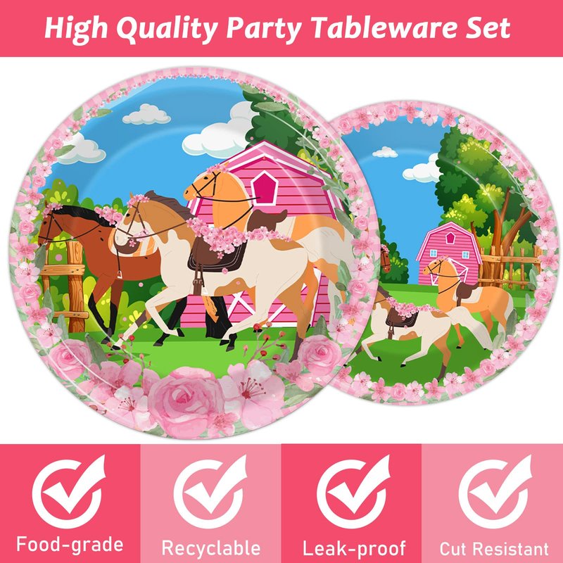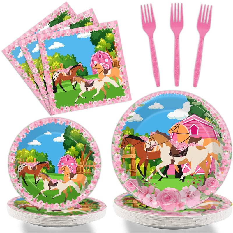 - 【Horse Birthday Supplies】These pink horse themed party plates can serve 24 guests, enough quantity for a normal horse theme big day. These horse birthday decorations will make your table settings look fantastic and all your guests will be happy.