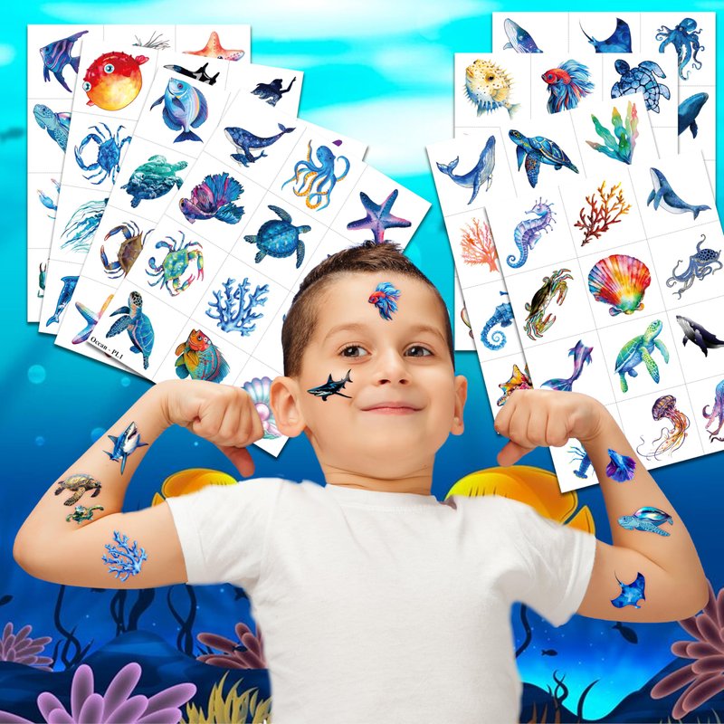 - Widely used: Ocean Blue Animals Under The Sea Turtle Temporary Tattoos pieces are suitable for many occasions such as birthday party supplies, party decorations, party favors, party bags, DIY decorations, pool and the beach or gift. Temporary tattoos are the best party favors and goodie bags fillers ever for any kind of celebration!