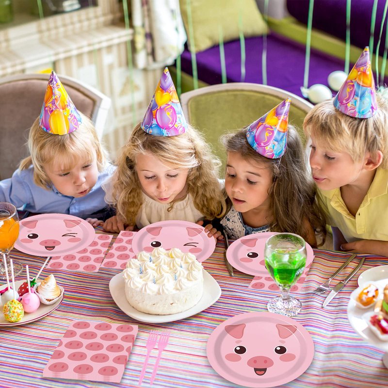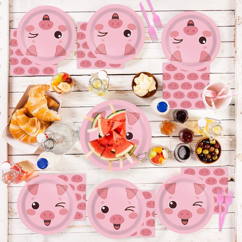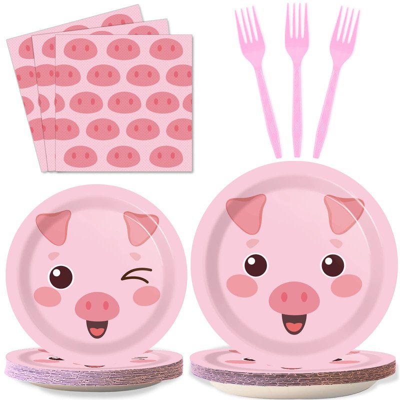 - Package included: You will receive 24 9" pink pig themed paper plates, 24 7" pink pig themed paper plates, 24 6.5"pieces pink pig themed napkins and 24 pieces plastic pink forks, each set can serve 24 guests.
