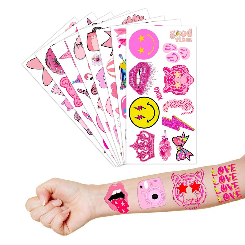- The Perfect Cute Pink Preppy Bachelorette Princess Girl Pastel Theme Party Gift: 8 Sheets Pink Preppy Bachelorette Princess tattoos stickers, each sheet measures 6.1 * 3.1 inch , one size fit all adult and kids. One of the most popular party themes for children, make the best party gifts for your children & Carnival gifts, help your children become small heroes at the party! Bring nonstop joy to the whole party! Make your kids receive full of expectation and exploration in every festival.