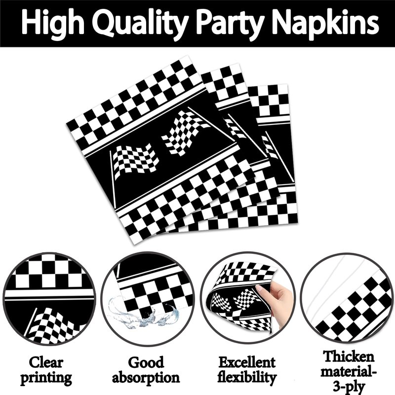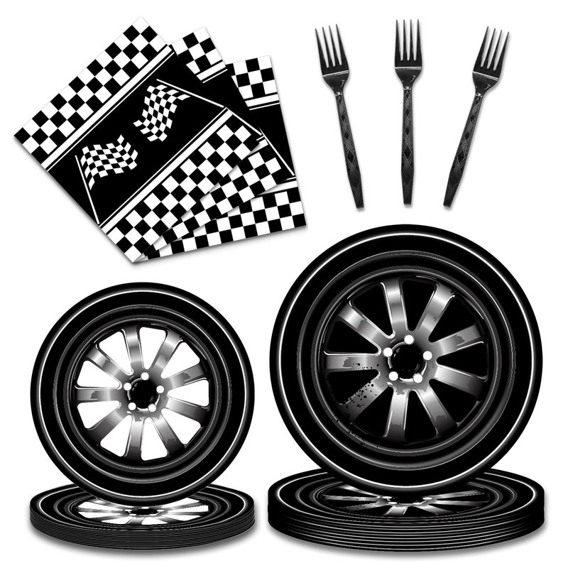 - What You Will Get: You'll receive 24 plates (9inch) + 24 plates (7inch) + 24 napkins (6.5inch) + 24 forks, there are a total of 96 pieces in this set, which will add fun to your race car party.