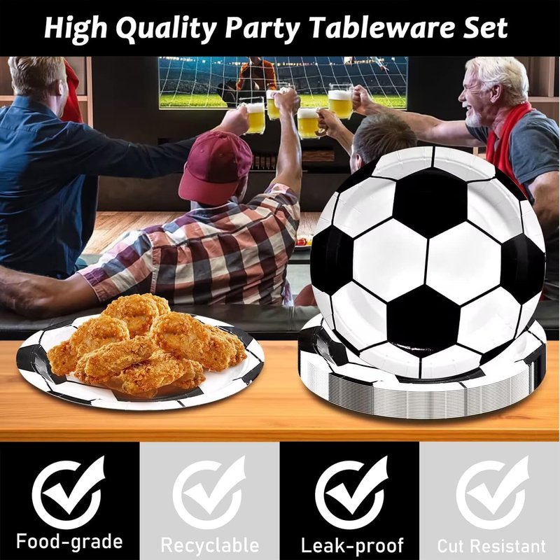 - Soccer birthday party supplies set suitable for any occasion! They can fit well with your other Soccer party decorations such as Soccer party tablecloth, Soccer party banner, Soccer party bags, Soccer party backdrops.