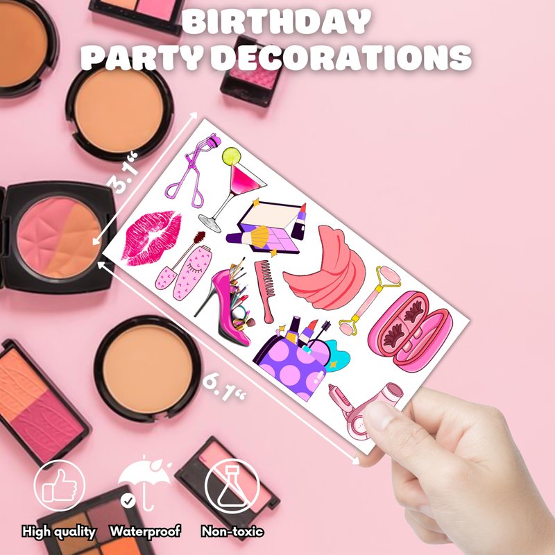 96 PCS Spa Makeup Temporary Tattoo Stickers Theme Birthday Party Decorations Supplies Favors Decor Cute Beauty Cosmetic Nail Tattoos Sticker Gifts for Kids Girls Women School Prizes Carnival Christmas