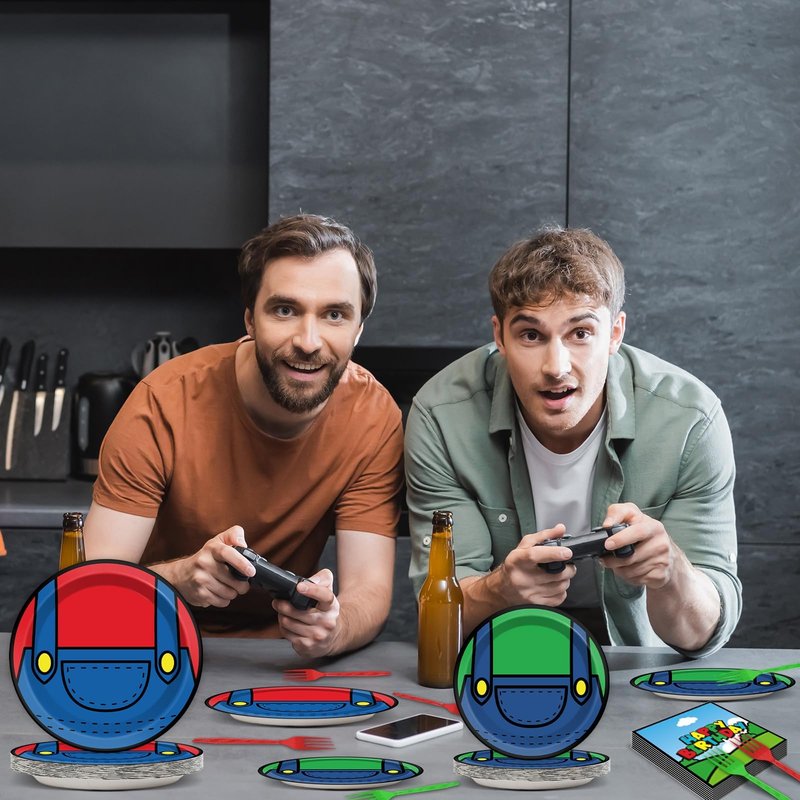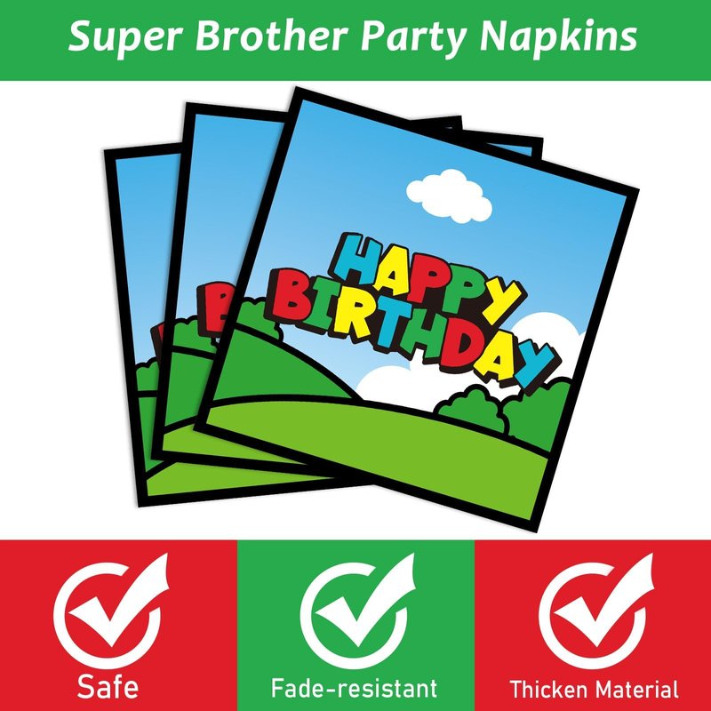 - 【Super Video Games Party Design】Our super brothers birthday party tableware set featuring classic super brothers. Impress your guests and add a cheerful feeling to celebration with this unforgettable addition to table setting.