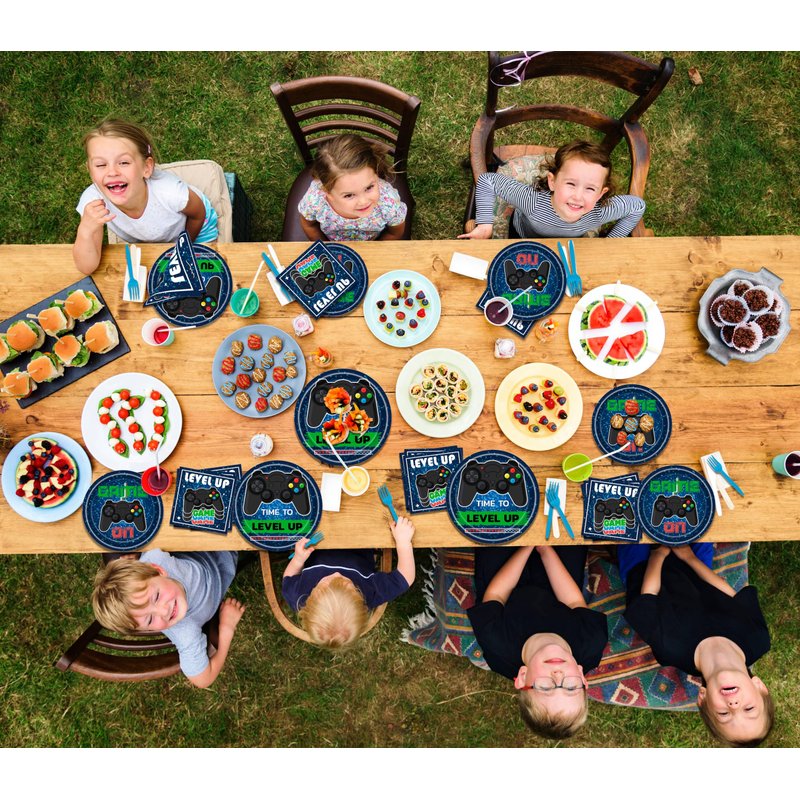 - Video Game Birthday Decorations: Our video game themed tableware set contains all the game elements you want, including level up, game on, game controllers etc. You can apply them to anyone video game party you want to hold for your children or yourself.