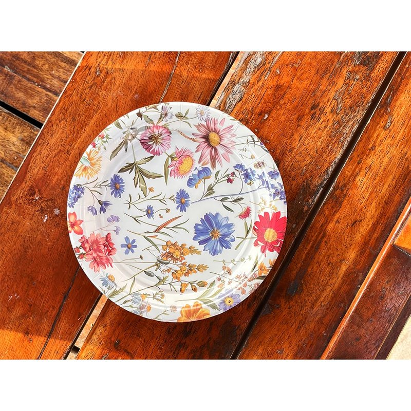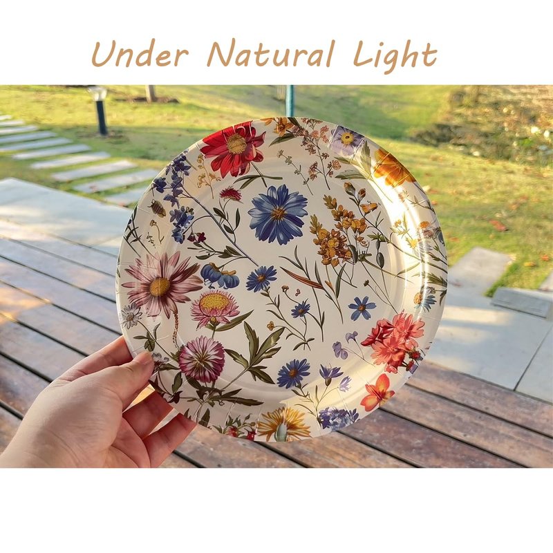 - Variety Pack: This 96-piece set includes 24 plates (9 in), 24 plates (7 in), 24 napkins (6.5 in), and 24 forks adorned with a vibrant wildflower print.