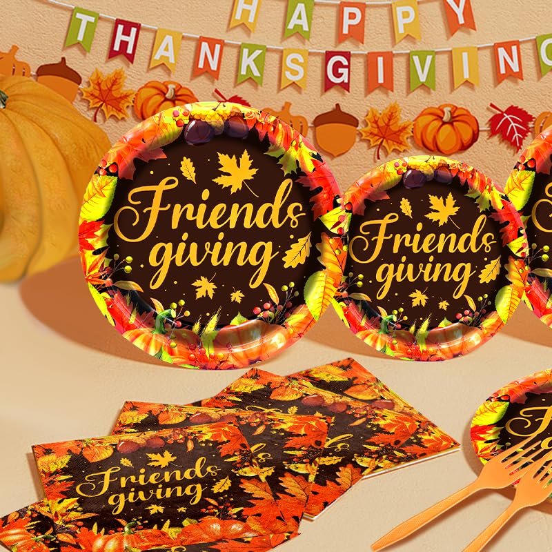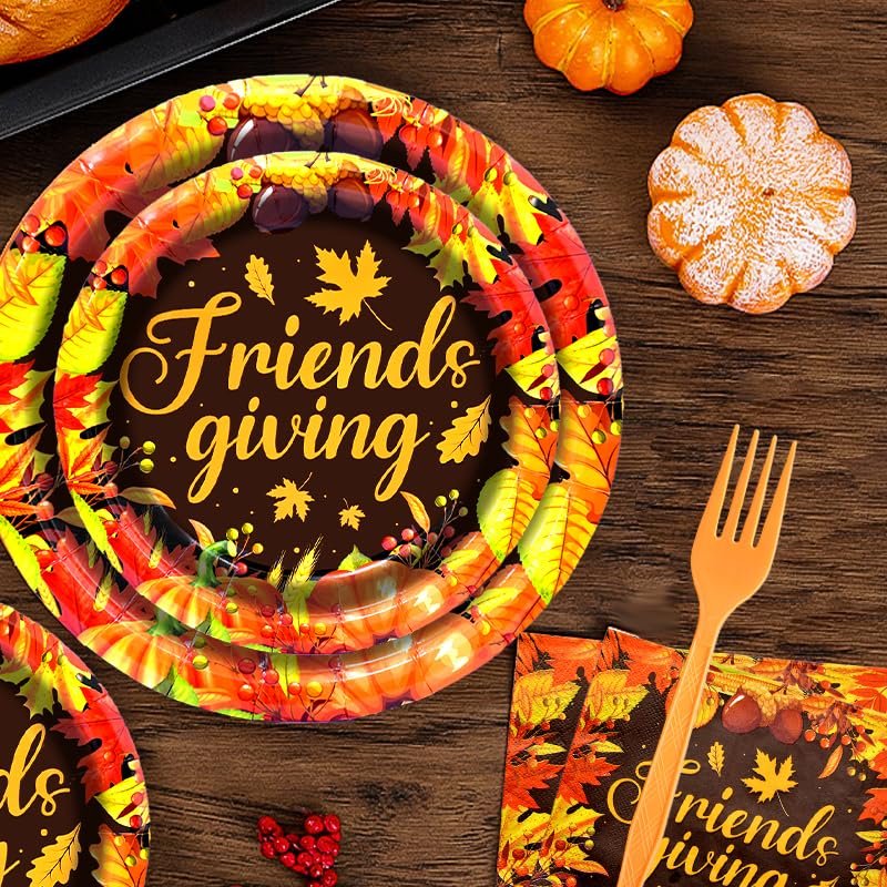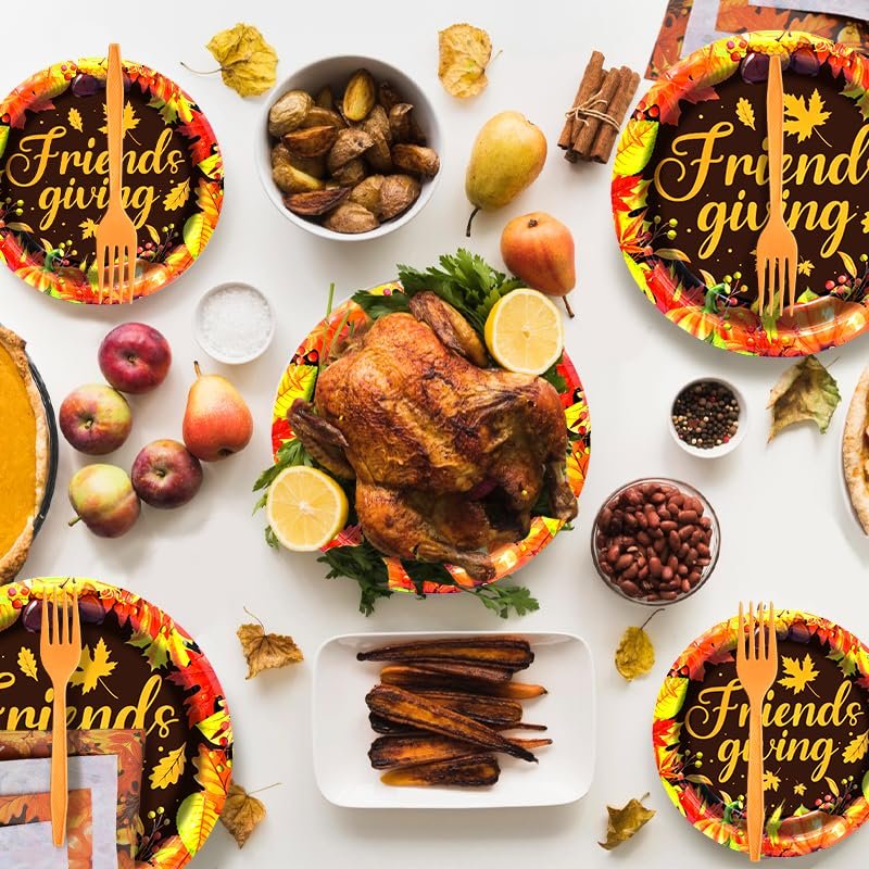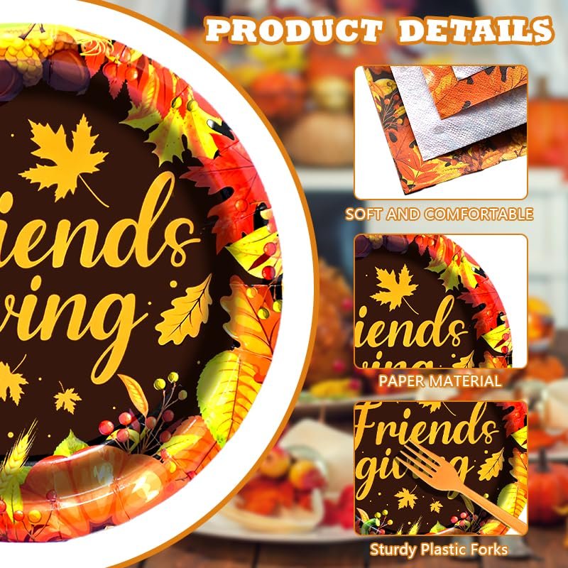 - High-Quality Dinnerware Set - This Friendsgiving tableware set includes everything you need for a festive autumn gathering. Made from premium quality paper and plastic, the set is sturdy enough to handle all your favorite dishes and desserts while being soft and comfortable for use.