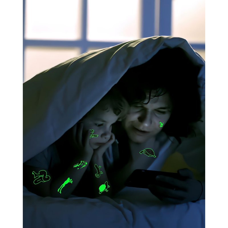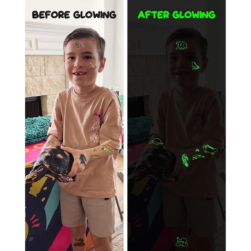 Glow in The Dark Snake Lizard Frog Crocodile Tortoise party Tattoos can be used wherever you want, such as arms, face, and hands,Instructions included on back of each sheet