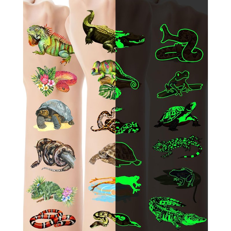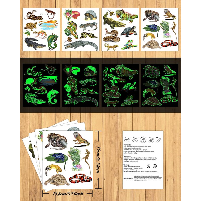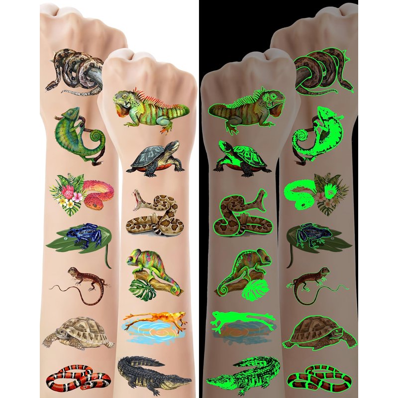- Luminous Reptile party decorations Package includes 96 pieces of Reptile tattoos in 24 styles of Reptile themed temporary tattoos, which can be used wherever you want,such as arms,face, and hands