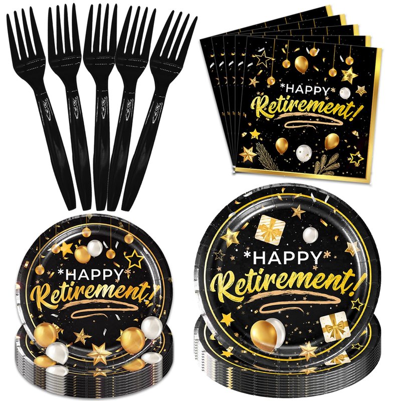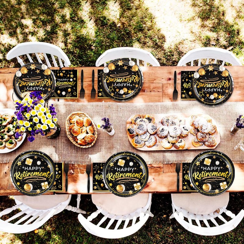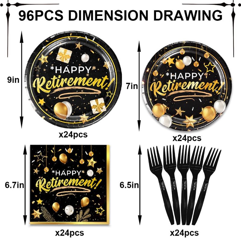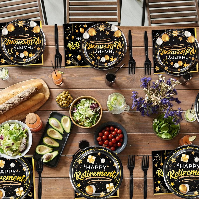 96Pack Paper Plates and Napkins Sets, Party Decorations Plates Supplies Tableware for Kids (retirement)