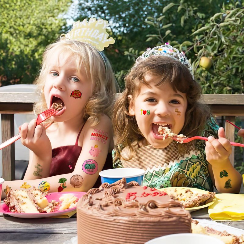 - Fun Money Jar Quote Collecting Birthday Party Supplies: 8 Sheets 96 PCS Fun Money Jar Quote temporary tattoos stickers, Have a variety of cartoon themed characters, Children can easily Fun Money Jar Quote stickers and take unique photos to make fond memories. The size of each sheet is 6.1 * 3.1 inches.