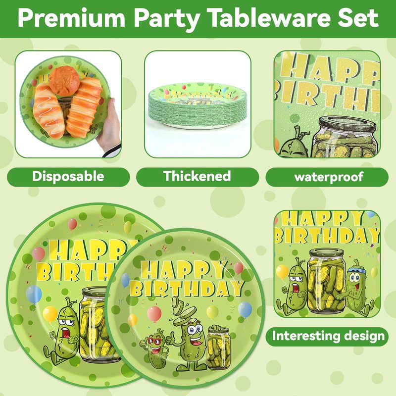 - Save Your Time: Our pickle tableware set are an ideal alternative to traditional party plates, you can throw them away when cleaning after the happy birthday party, it will not cause environmental pollution, and you can enjoy more time with friends and family.