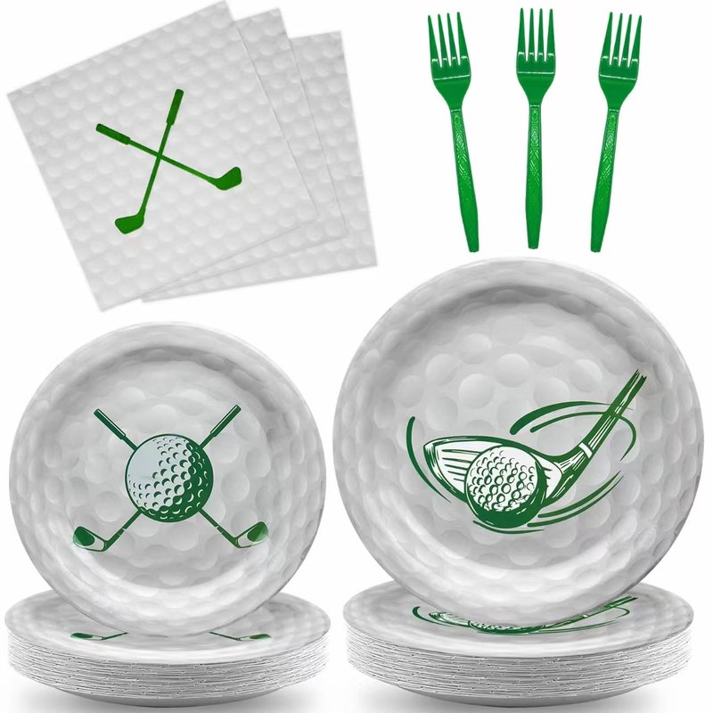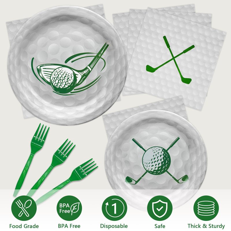 - Serve 24 Guests: This golf party dinnerware plate set comes with everything you need for 24 guests, including 24pcs 9'' dinner plates, 24pcs 7'' dessert plates, 24pcs golf paper napkins, 24pcs plastic forks, enough to meet your different needs in daily use and entertain guests