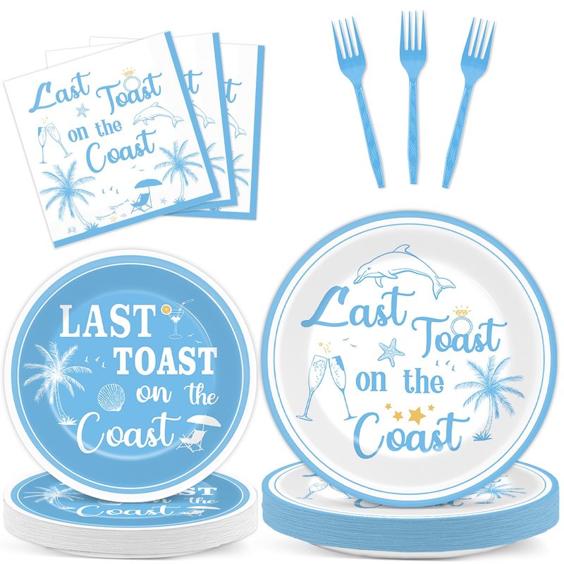 96Pcs Last Toast on the Coast Party Supplies Coastal Bachelorette Paper Plates Napkins Beach Pool Tableware Set Summer Dinnerware for Bridal Wedding Girl Birthday Party Baby Shower Decoration Serve 24