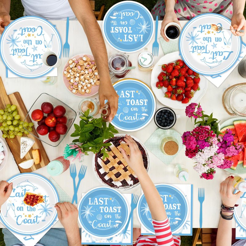 96Pcs Last Toast on the Coast Party Supplies Coastal Bachelorette Tableware Blue Beach Pool Plates Napkins Party Decors Bach Bachelorette Dessert Plate for Wedding Bridal Shower Summer Party Favor