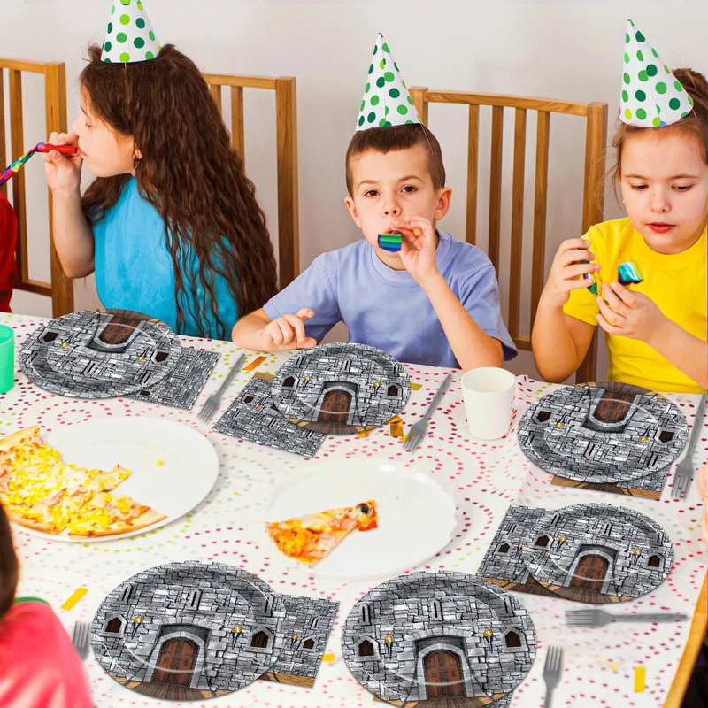 Elevate your medieval party experience with our premium medieval castle dinnerware featuring a adorable design that adds a touch of elegance to any gathering. These knight castle decorations not only provide sturdy support for a variety of dishes but also showcase a delicate castle print.