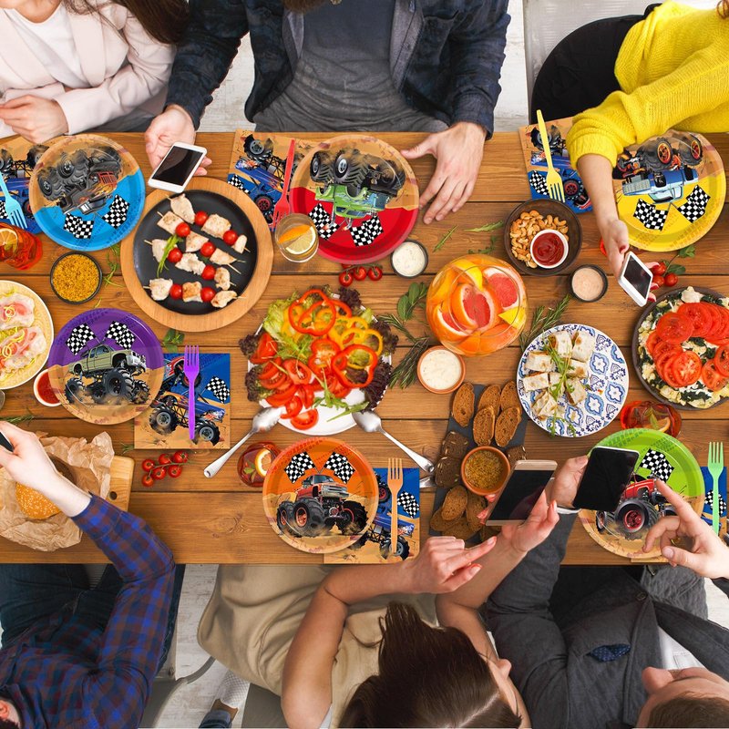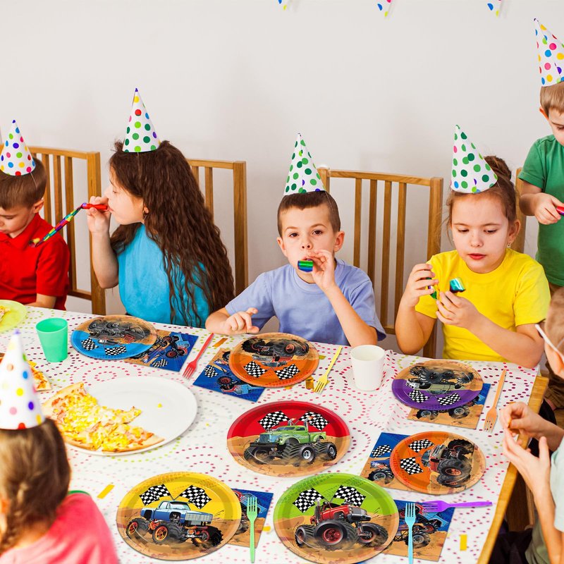 - 5.Save Your Time:Our Monster Truck Birthday Party Plates are disposable, you can throw it away after use, saving you the trouble of washing dishes. After the party is over, you can spend more time with family or friends and less time cleaning up.