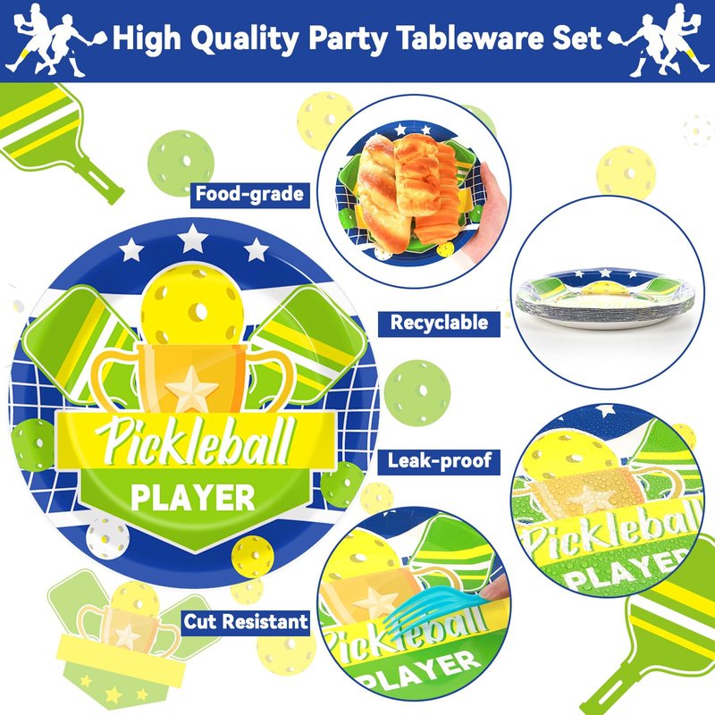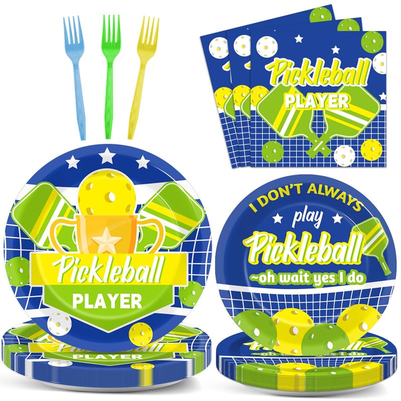 - 【The Perfect Pickleball Party Complement】These fun Pickleball Players Sports Theme Party Table Supplies Paper Plates Napkins Forks are the perfect complement to your Pickleball party decorations. They can be perfectly matched with your other Pickleball party decorations, such as Pickleball party tablecloths, Pickleball party banners, Pickleball party bags, Pickleball party backgrounds,etc.