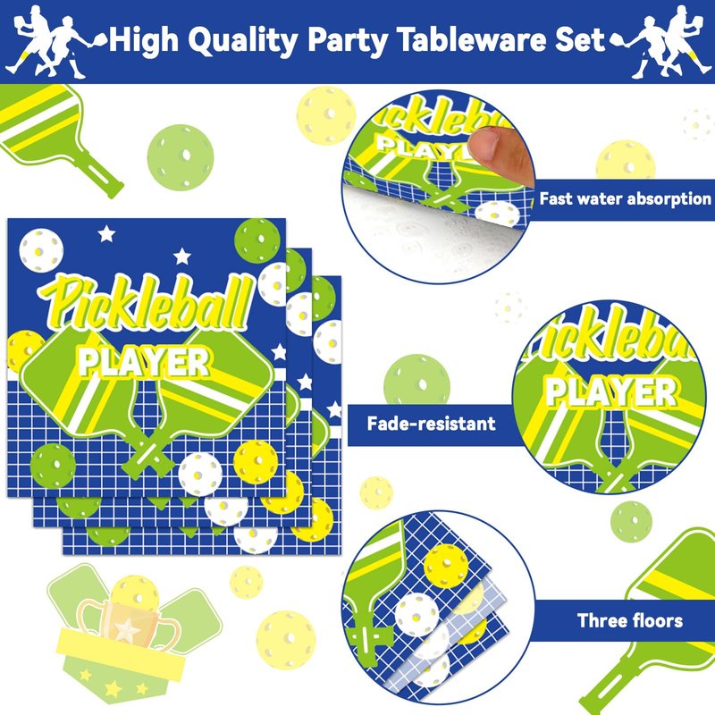 - 【High-Quality Materials】All our Pickleball Sport Party Supplies Tableware Set are made from high-quality thick paper that is safe, odorless, heat-resistant, and durable.The pickleball plates are soft and have strong absorbency. The prints and colors are beautiful and do not fade easily, making them a favorite among everyone. Please rest assured that safety and quality are our top priorities.