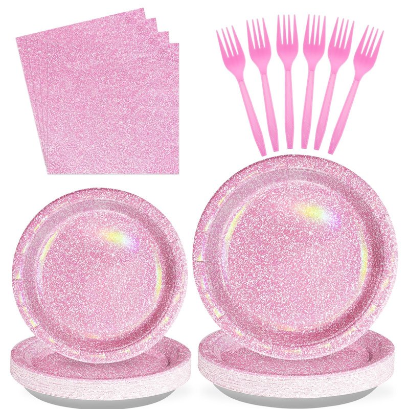 - 【Easy to Clean Up】This pink disposable tableware sets can simply be packed up and thrown away after the glitter party, saving you the trouble of washing the dishes and minimizing your cleaning burden, so that you can have more time and energy to enjoy the party and easily create unforgettable pink memories